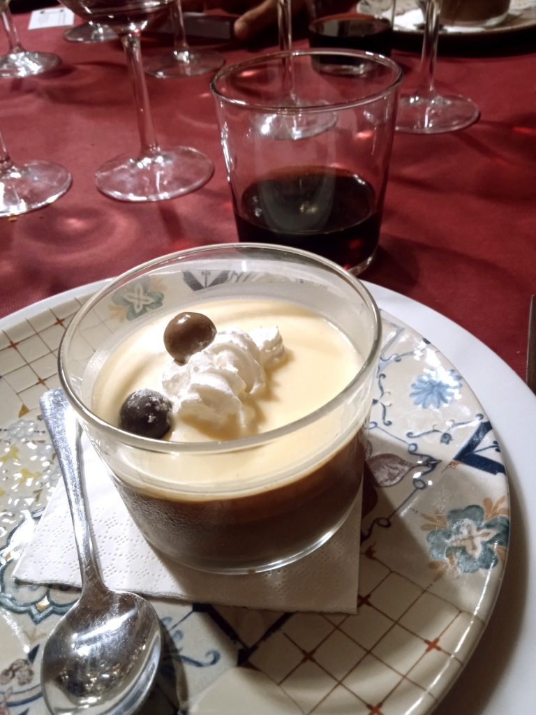 Para finalizar con un postre de tarta casera de dos chocolates, probamos el nuevo Vermut Paulus II Ay Señor !, un Vermut limpio, brillante, de color ámbar-caoba. En nariz sugerente y alta intensidad, muy expresivas las especias, ajenjo, clavo, cortezas de cítricos, (sin añejar), muy actual. En boca vermut muy agradable, distinto, con un paso muy sedoso y goloso, persistente y muy equilibrado.